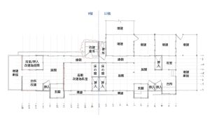 屋身外部為 #簓子下見,內部為 #小舞壁(即 #編竹夾泥牆) 。簓子下見配合雨淋板角度作痕刻,使之與雨淋板密接,增加防雨作用;建具的部分,原有之襖、障子門、舞良戶、出窗及欄間保存完整。 地坪的部分,於原有地坪上方因使用需求改為其他鋪面,下方仍留有原先之榻榻米。 原為坐擁庭園的標準日式住宅,庭園留有多